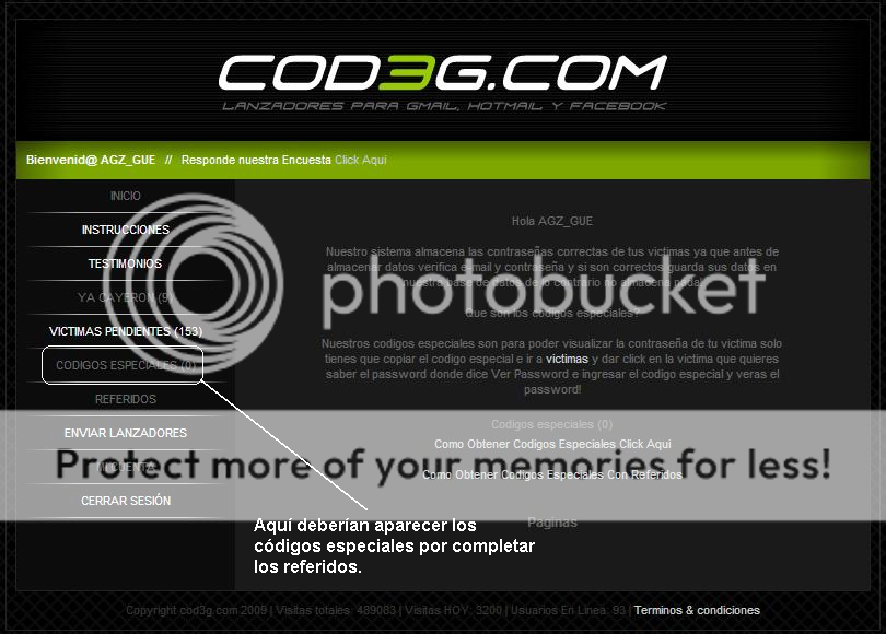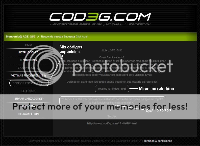 But not everything was so good, though it was free to send xploits, if we could get a password would have to pay for it or we could use the referral system, which yielded 5 codes for 5 passwords for every 100 COD3G people referred to and be placed on the site.